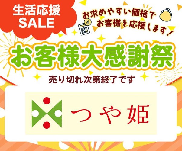 秋の味覚・新米の季節がやってきました。くりやでは、お客様還元セールとして島根県産「つや姫」を期間限定の特別価格でご提供中です。